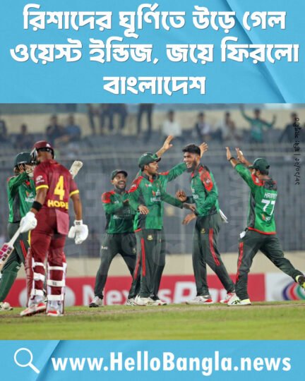 রিশাদের ঘূর্ণিতে উড়ে গেল ওয়েস্ট ইন্ডিজ, জয়ে ফিরলো বাংলাদেশ