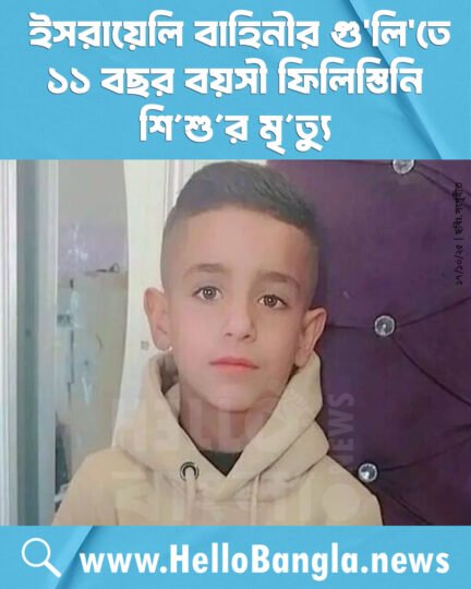 ইসরায়েলি বাহিনীর গু’লি’তে ১১ বছর বয়সী ফিলিস্তিনি শি’শু’র মৃ’ত্যু