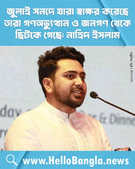 জুলাই সনদে যারা স্বাক্ষর করেছে তারা গণঅভ্যুত্থান ও জনগণ থেকে ছিটকে গেছে: নাহিদ ইসলাম