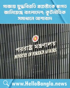 গাজায় যুদ্ধবিরতি প্রচেষ্টাকে স্বাগত জানিয়েছে বাংলাদেশ; কূটনীতিক সমাধানে আশাবাদ