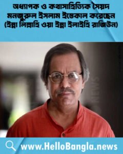 অধ্যাপক ও কথাসাহিত্যিক সৈয়দ মনজুরুল ইসলাম ইন্তেকাল করেছেন (ইন্না লিল্লাহি ওয়া ইন্না ইলাইহি রাজিউন)