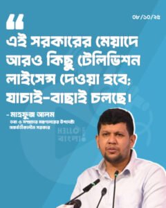 এই সরকারের মেয়াদে আরও কিছু টেলিভিশন লাইসেন্স দেওয়া হবে; যাচাই-বাছাই চলছে: তথ্য উপদেষ্টা