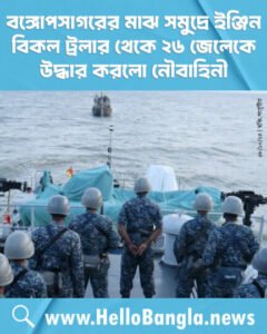 বঙ্গোপসাগরের মাঝ সমুদ্রে ইঞ্জিন বিকল ট্রলার থেকে ২৬ জেলেকে উদ্ধার করলো নৌবাহিনী