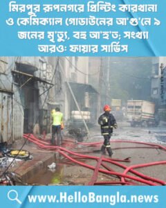 মিরপুর রূপনগরে প্রিন্টিং কারখানা ও কেমিক্যাল গোডাউনের আ’গু’নে ৯ জনের মৃ’ত্যু, বহু আ’হ’ত; সংখ্যা আরও: ফায়ার সার্ভিস