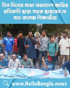 তিন দিনের মধ্যে অধ্যাদেশ জারির প্রতিশ্রুতি ছাড়া সড়ক ছাড়বেন না সাত কলেজ শিক্ষার্থীরা