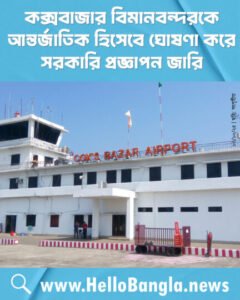 কক্সবাজার বিমানবন্দরকে আন্তর্জাতিক হিসেবে ঘোষণা করে সরকারি প্রজ্ঞাপন জারি