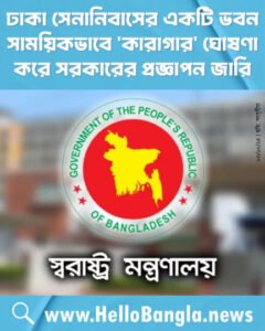 ঢাকা সেনানিবাসের একটি ভবন সাময়িকভাবে ‘কারাগার’ ঘোষণা করে সরকারের প্রজ্ঞাপন জারি